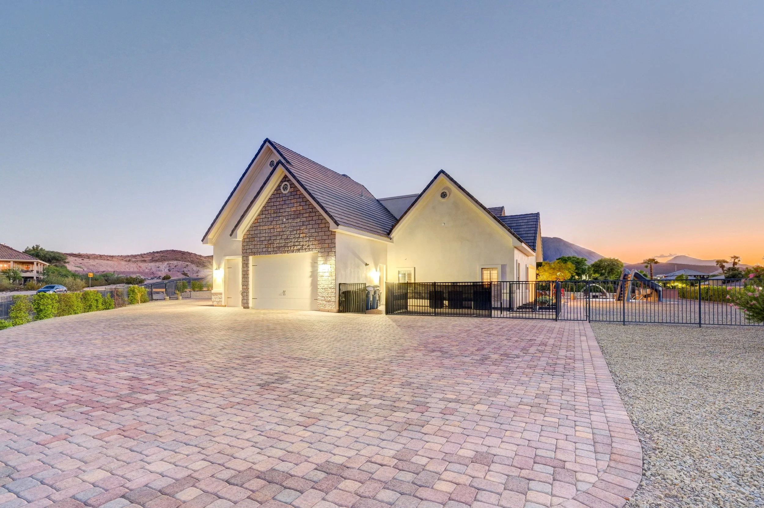 Main level suites accessed from the grand entry foyer at The Castle luxury vacation rental in Henderson near Las Vegas